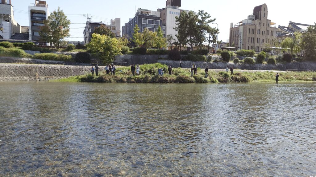 集合場所四条大橋上流100m付近の河川敷右岸側(西側)