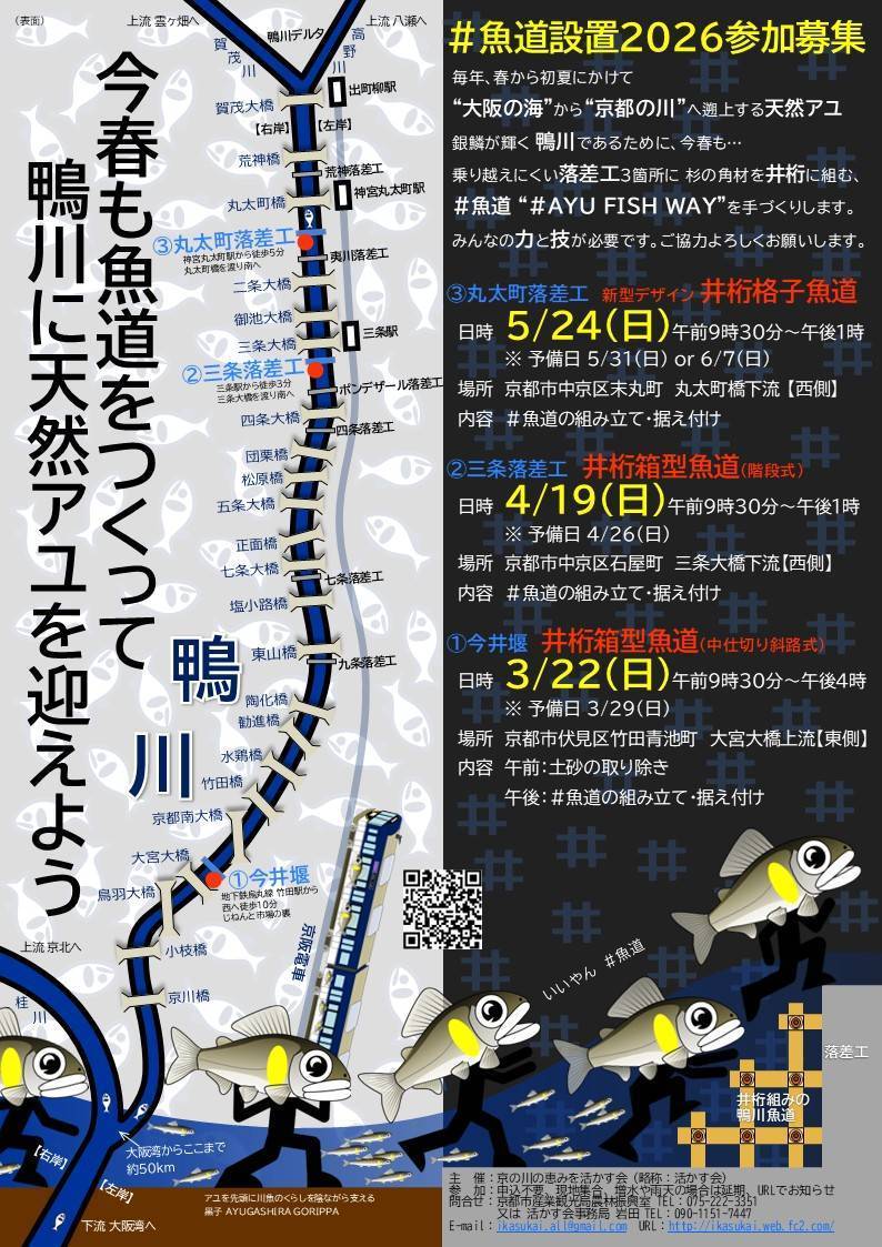 その後4月19日9時30分〜三条魚道設置作業を行いますので興味ある方は、見学やお手伝いにお越し下さい♪