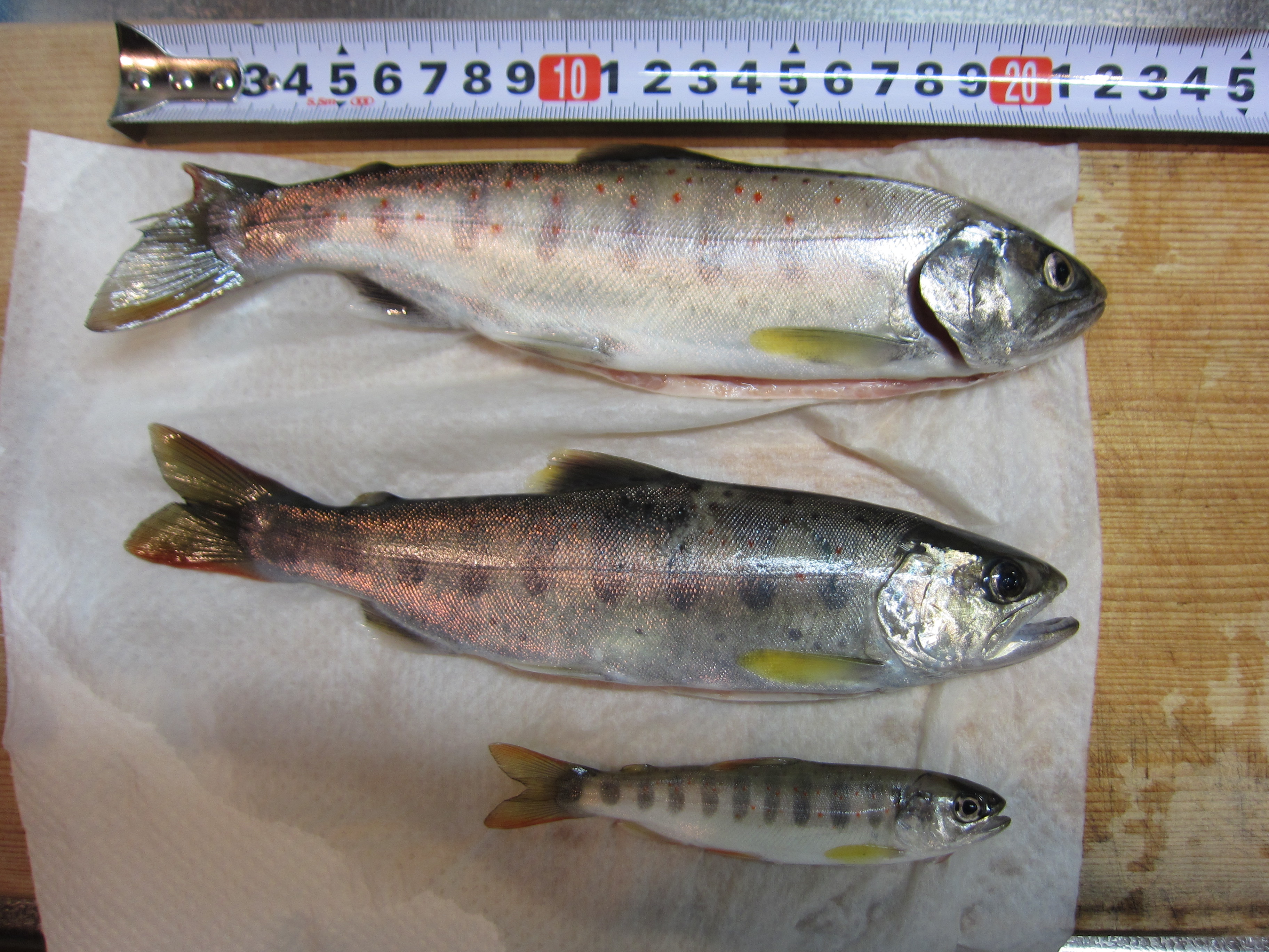 | コメント | 蛍谷キャンプ場から1km程度、上流に向けて溯上。 先月の大雨で斜面崩落の場所を多数見かけた、杉の倒木も多く、斜面の状態に注意しながら釣り上がった。長靴で行ったが、ウェーダーで川に入って移動できると安全で楽だと思った。 昨日は曇り時々雨、当日は晴れ、川の状態は穏やかで濁りなし。 5.5mハエ竿で提灯仕掛け 天井糸90cm+ナイロン道糸0.6号+ハリス0.4号+半スレ6号 ガン玉2B(針から20cm程度のところ)、途中から目印なし(天井糸で大体分かる) エサはミミズ 半スレ6号が途中でなくなったので、後半は7号の渓流針を使用 あまご×2 (キープ2) 豆あまご×2 (針を飲んで死んだためキープ1) あぶらはや 沢山 途中で提灯テンカラも試してみたが反応なし、(試行回数が少ないので何とも・・・) 渓流釣りは3日目の超初心者なので、魚影が濃いのか薄いいのか分からず、場所によって、アマゴらしき影が数匹見える。 |