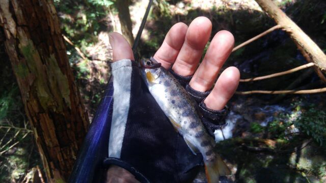 コメント鞍馬川源流は台風の影響で凄いことになってますね(@_@) 百井谷川に入りましたが。雑魚と新子の嵐!! 谷アマゴですから・・・サイズは細かいです・・・ キープは2匹!! 18・17cmの2匹(キープ)