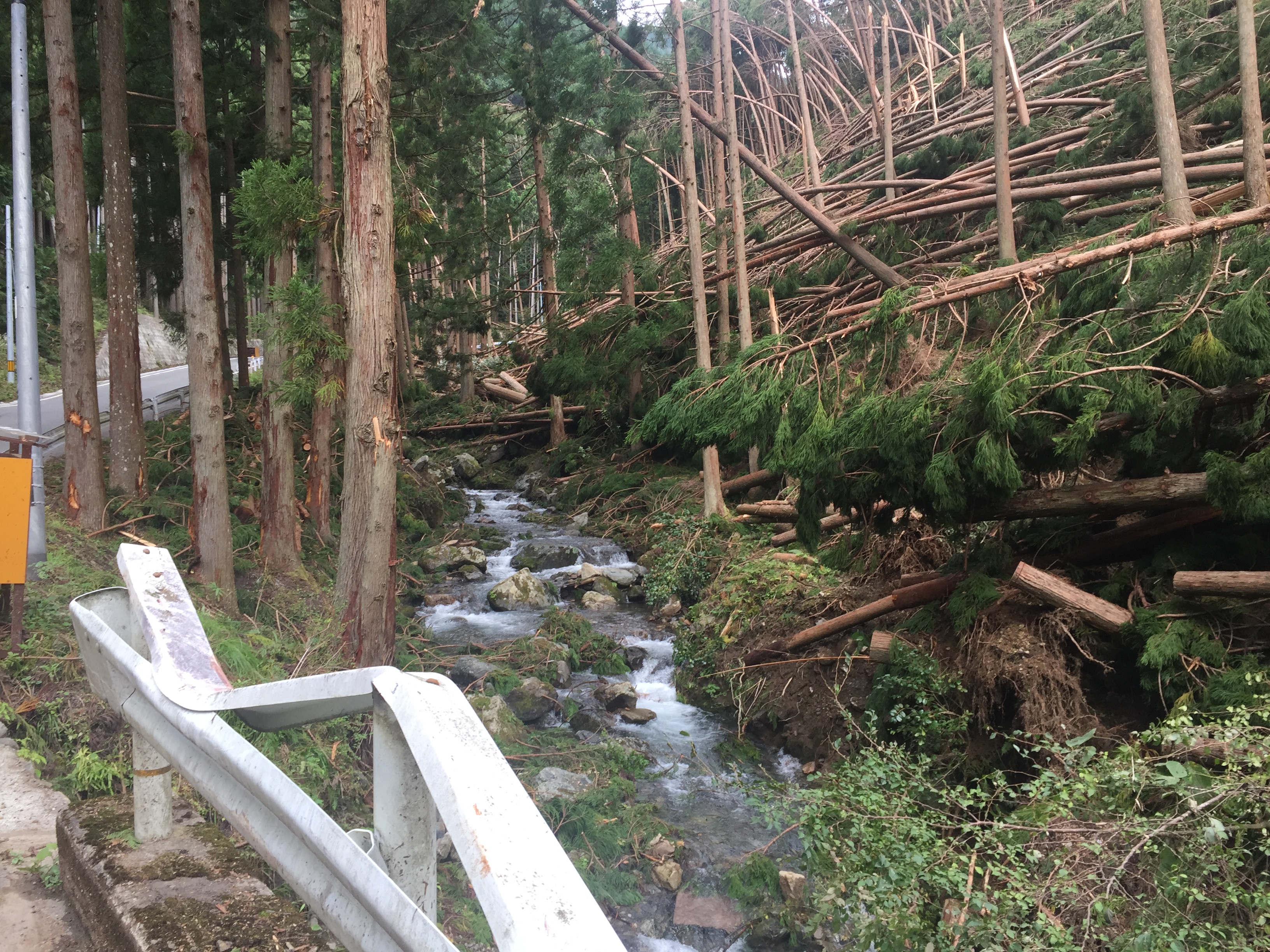 鞍馬川上流 台風の影響で杉が倒れ根曲りの状態。危険ですね〜。 上流は危険なのでおすすめできません。取り敢えず疲れました。