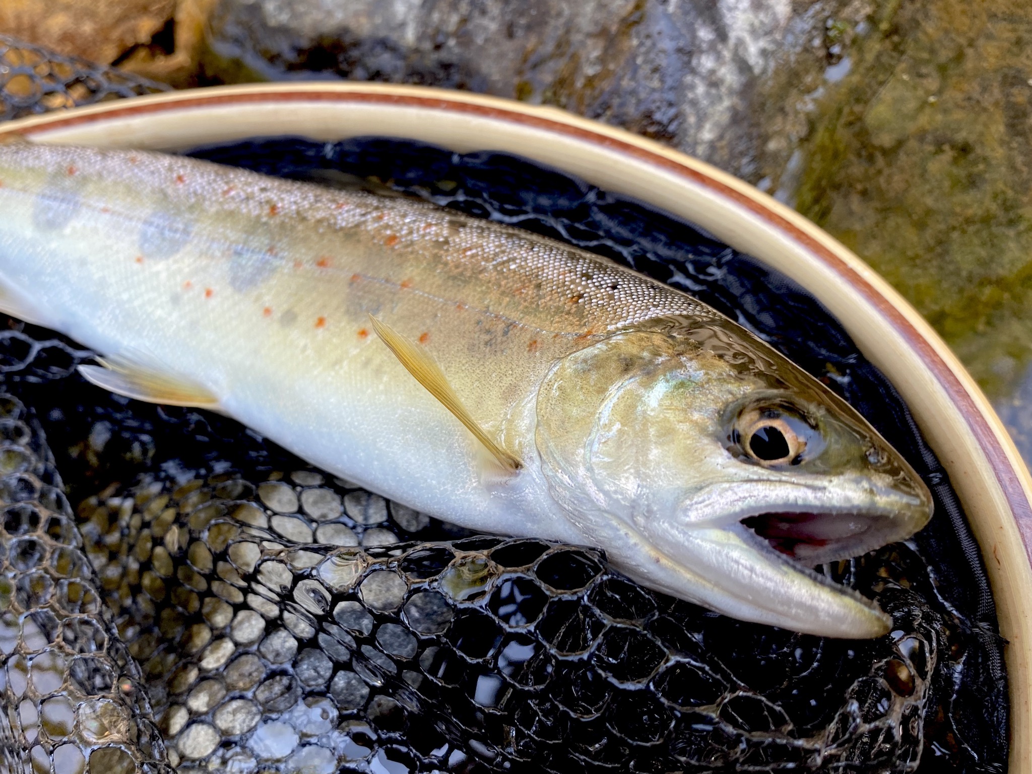 コメント流れ込みの白泡から通して流れが緩くなるあたりでヒット。 リリース後にうかつに歩きだしたら足元から逃げていく魚影を発見。 2尾目のチャンスを逃して終了しました。