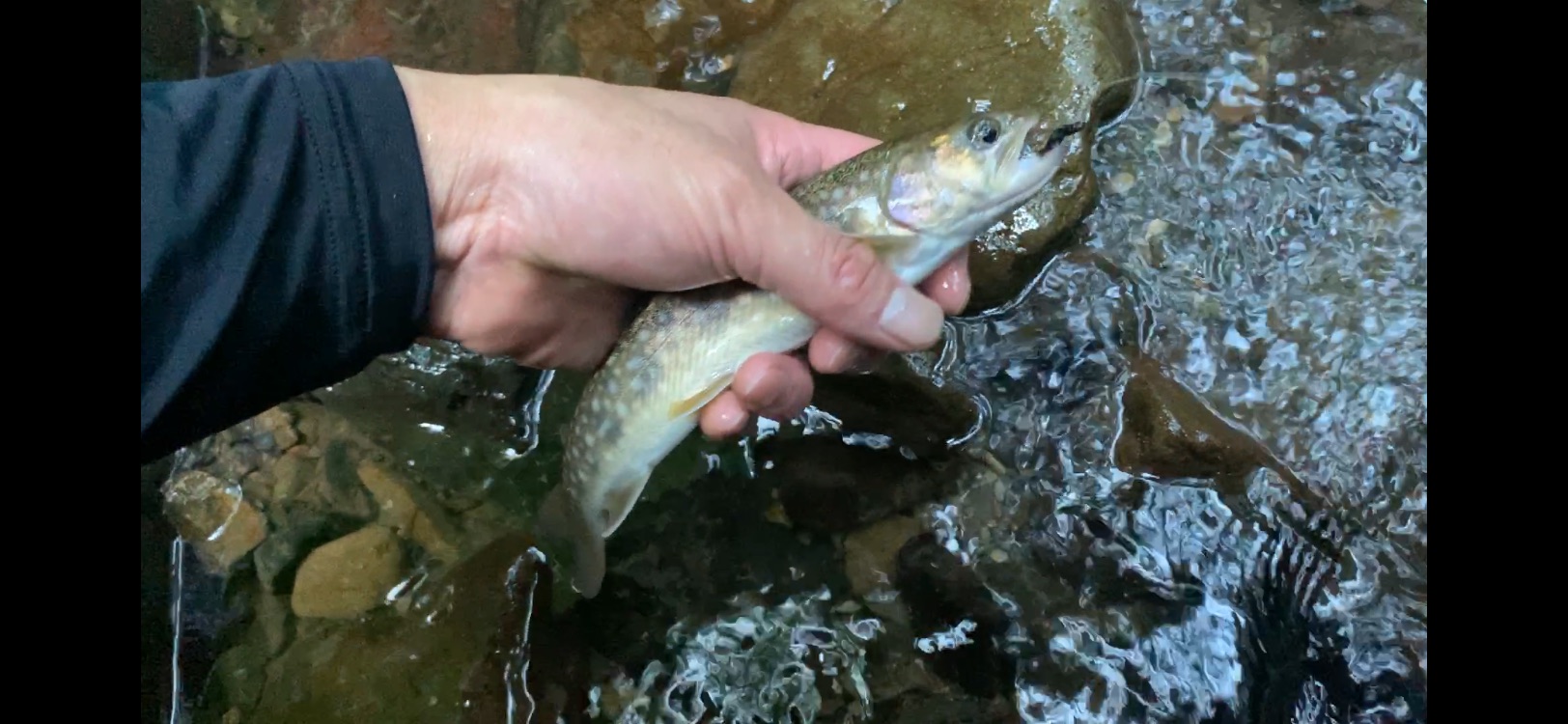 テンカラでの釣行。 初めてのイワナを釣り上げ嬉しい。